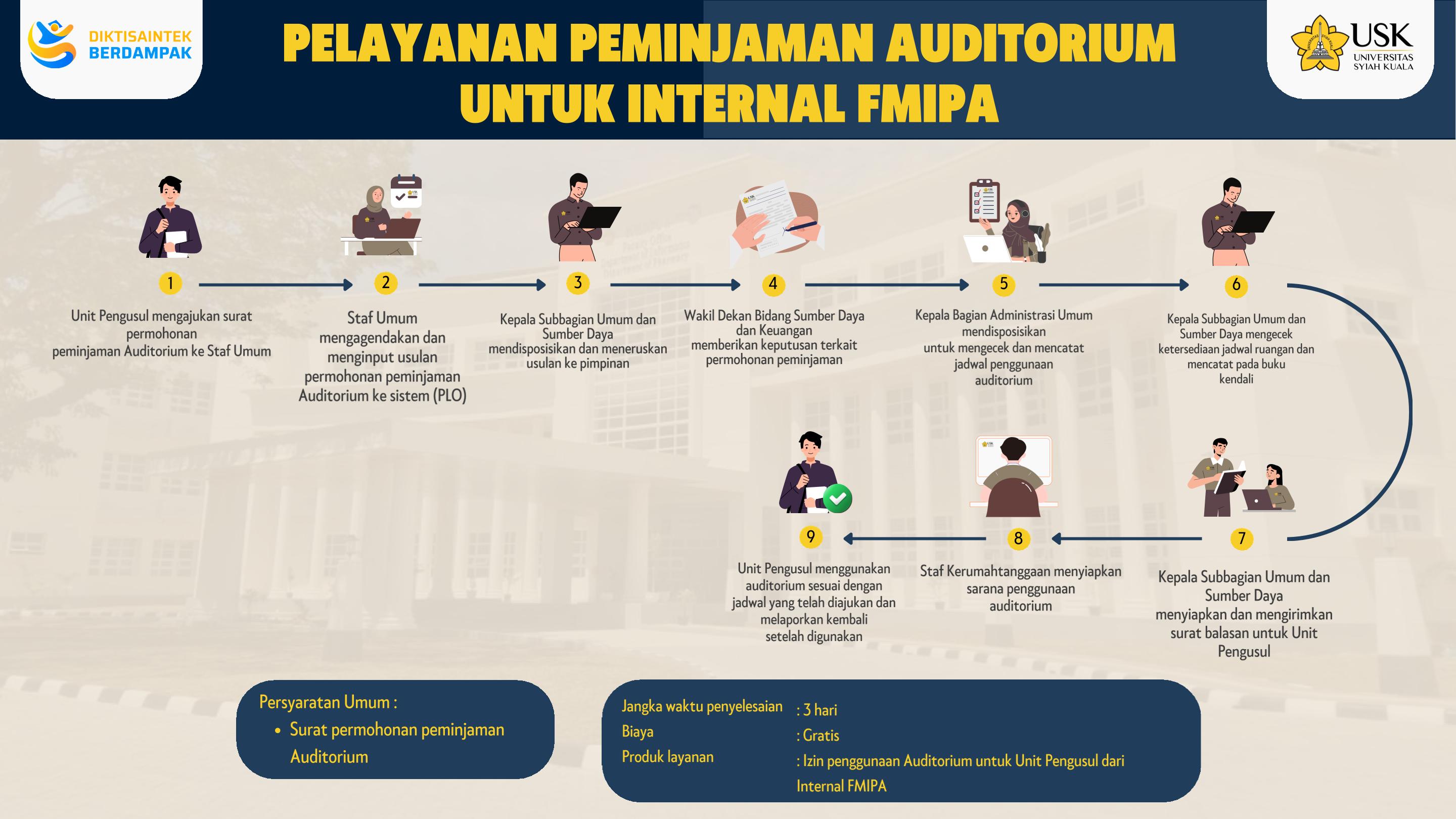 Layanan peminjaman auditorium untuk eksternal Fakultas Matematika dan Ilmu Pengetahuan Alam dan Non Universitas Syiah Kuala
