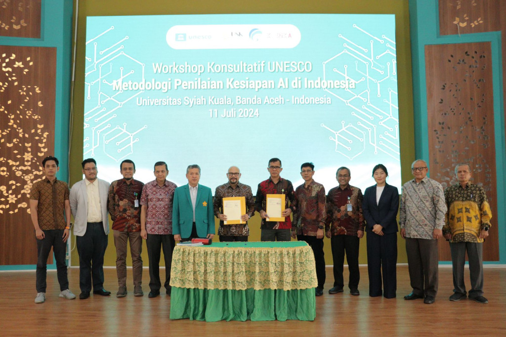 Banda Aceh, July 11, 2024 – The Informatics Department of FMIPA Universitas Syiah Kuala (USK) hosted the UNESCO Consultative Workshop on the Readiness Assessment Methodology for Artificial Intelligence (RAM AI) in Indonesia. This event resulted from the collaboration between UNESCO, KOMINFO, USK, and KORIKA (Collaboration for Industrial Artificial Intelligence Research and Innovation).