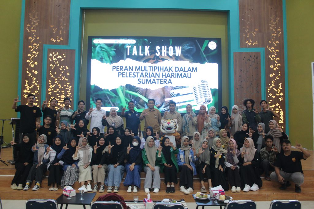 The talk show, which was part of the event, featured various expert speakers. Moderator Azizah Yuliabsy and note-taker Pocut Aurellia Irham directed the discussion with the speakers. Dessy Puspita Sari, S.Hut. from BKSDA, discussed BKSDA’s direct involvement in habitat management and protecting Sumatran tigers from external threats. She explained the function of controlling the impact of damage to biological natural resources according to Minister of Environment and Forestry Regulation No. 17 of 2022 and outlined the three pillars of conservation: protection, preservation, and sustainable use. Major challenges include forest conversion, poaching, declining prey animal populations, and low public awareness. Protection efforts include building tiger-proof enclosures, evacuation and release, occupancy surveys, security patrols, and outreach.